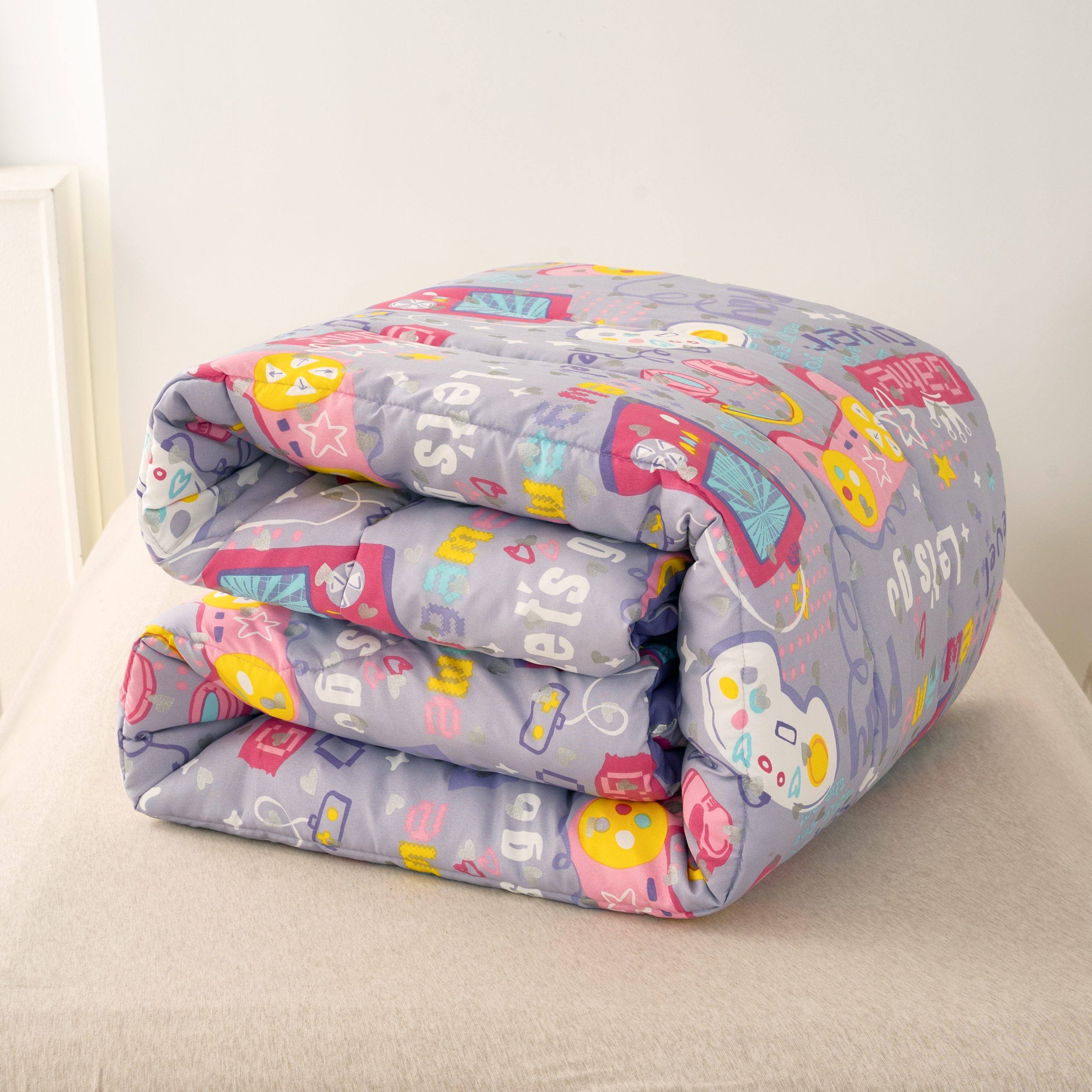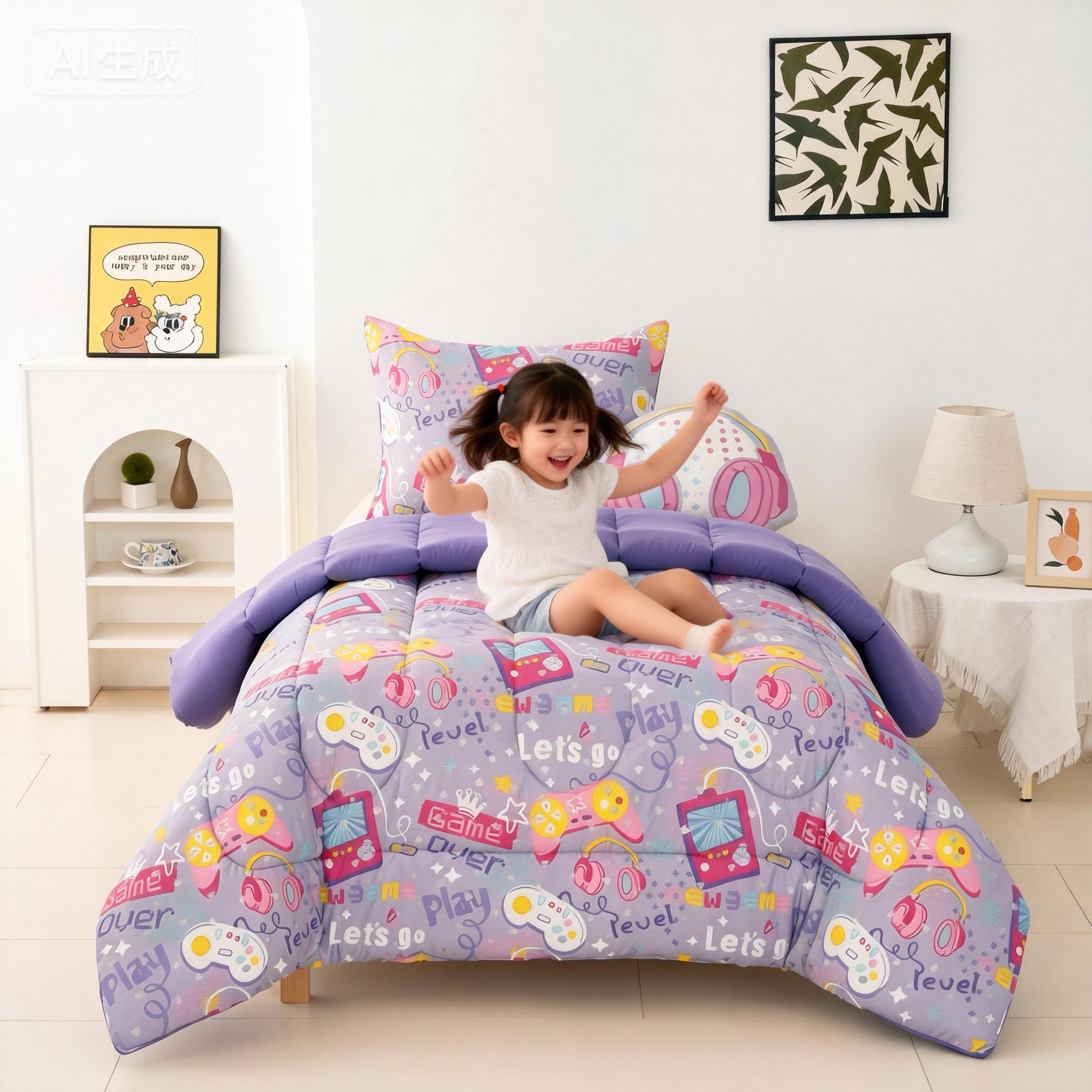 【Trendy Aesthetic】 Designed for the next generation of girl gamers, this set features a unique lavender base with vibrant pink accents. Moving away from traditional pinks, it embraces a bold, forward-thinking palette. The all-over graffiti design is dynamic and expressive, making the bedroom feel energetic and creative.