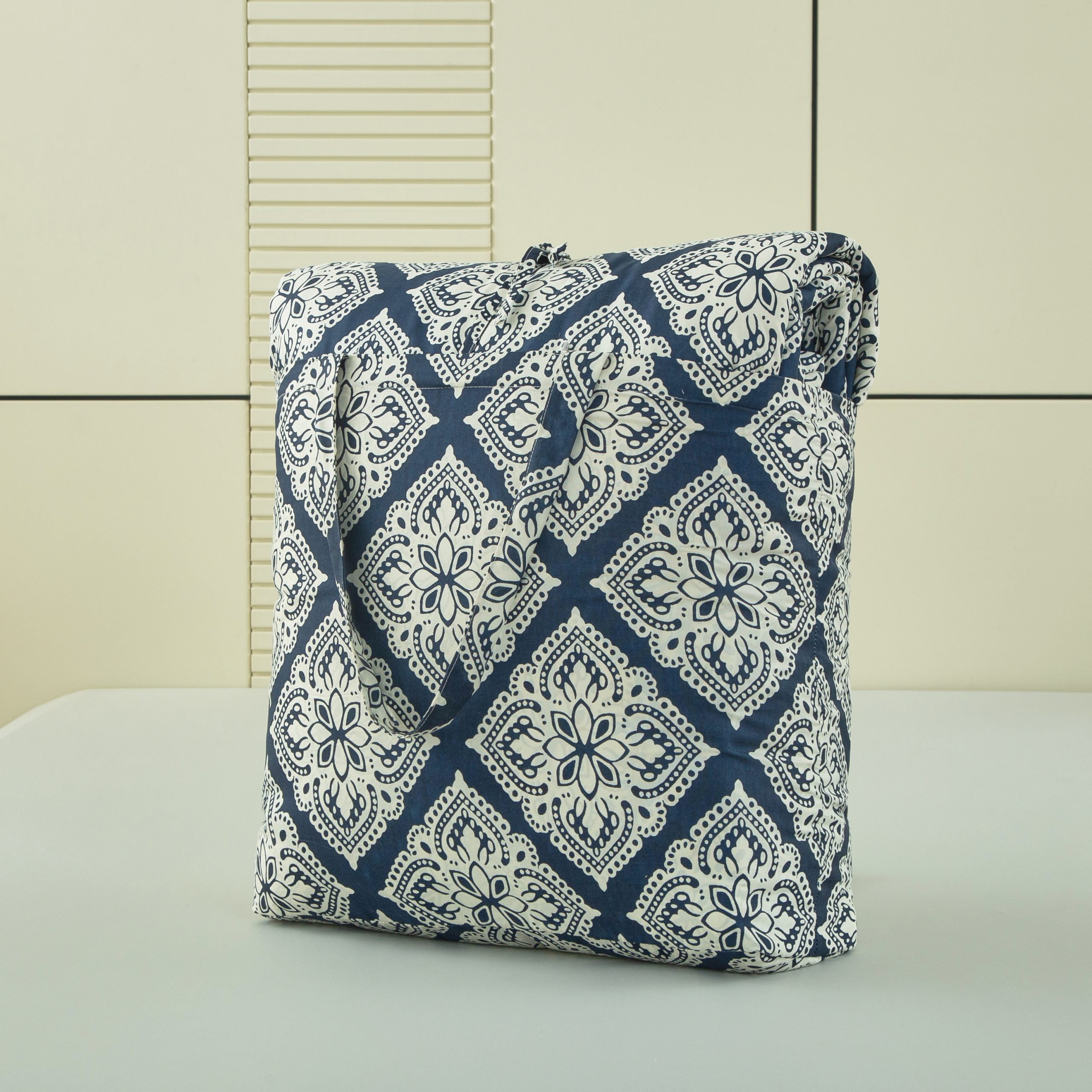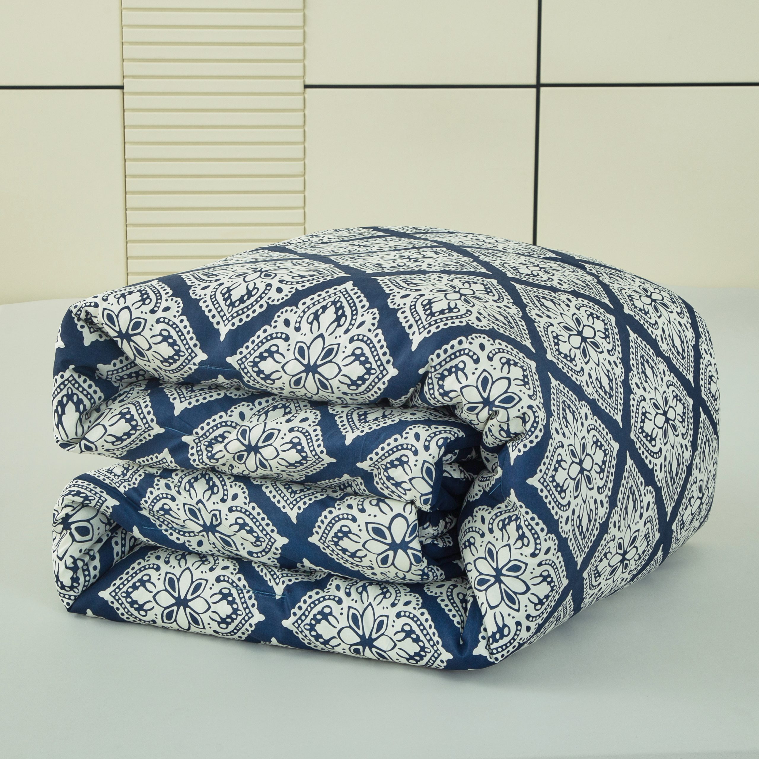 Ethnic Geometric Rhombus Print Comforter Set | Navy Blue Mandala Aesthetics Bedding | Skin-Friendly & Breathable All-Season Quilt