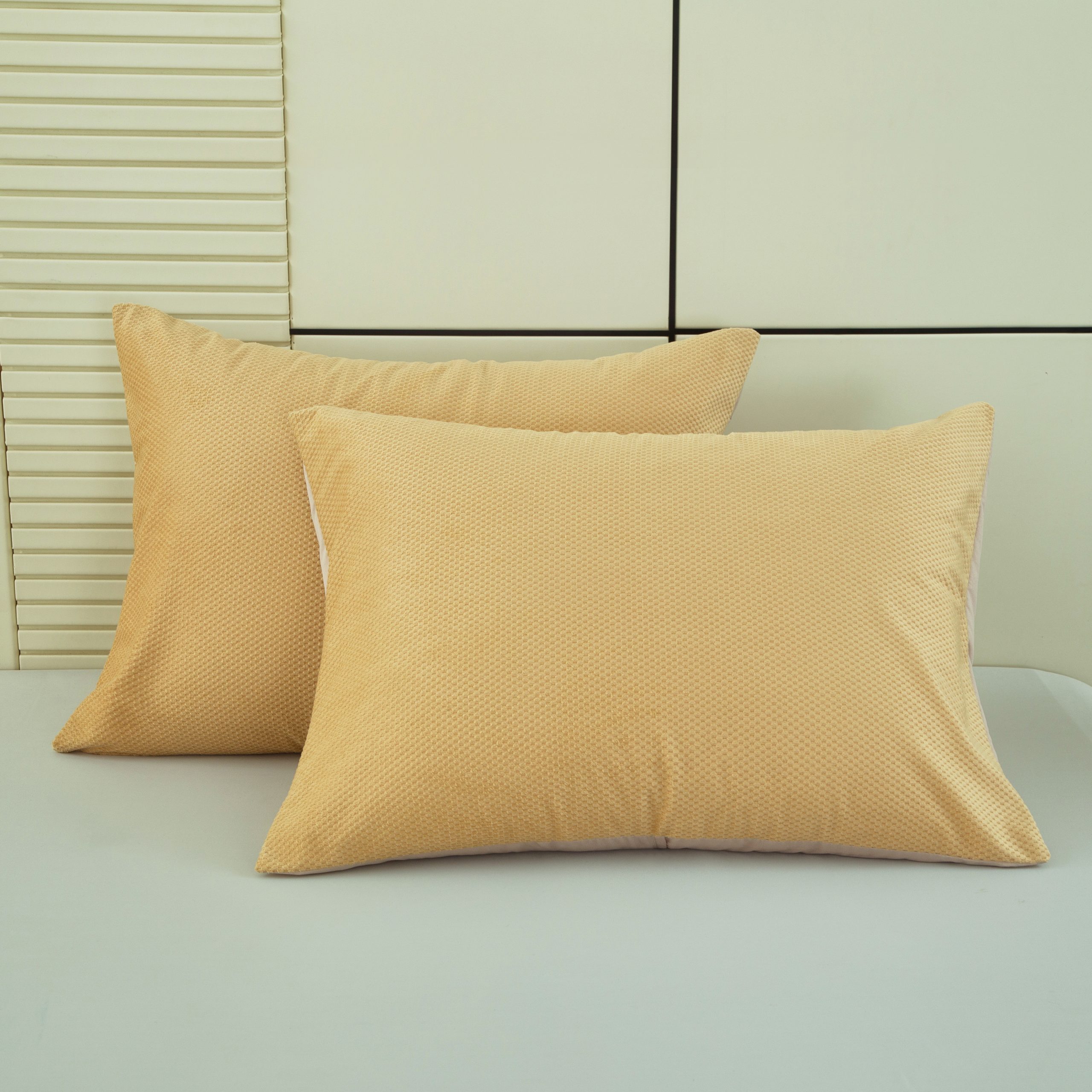 Featuring a classic waffle weave texture, this set combines warm ginger yellow with creamy beige for a cozy bedroom vibe. The fabric is soft and skin-friendly, with evenly distributed filling to ensure a cloud-like sleep experience, perfect for air-conditioned rooms or transitional seasons.